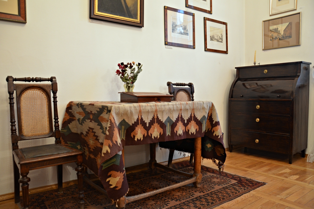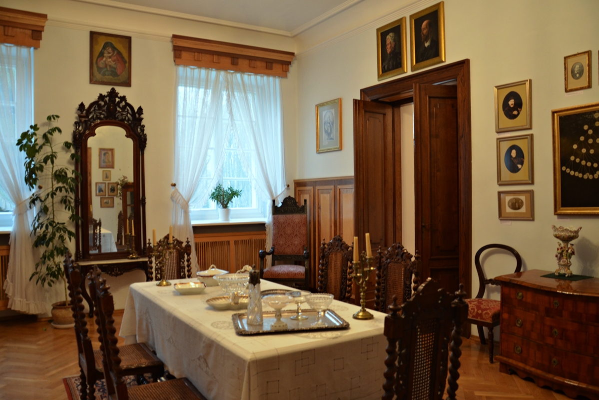 Wchodzę do środka. Stara, drewniana podłoga skrzypi pod moimi nogami. Po chwili podchodzi do mnie uśmiechnięta kobieta pełniąca w muzeum dyżur. Wydaje się być lekko zdumiona, zupełnie tak, jakby nikogo się tutaj dziś nie spodziewała. By sięgnąć po bilet wstępu, otwiera małą gablotkę, z której wydobył się intensywny zapach starego papieru. Pełno w niej książek J.I. Kraszewskiego. Kupuję „Noc majową”. Nie znam tej powieści, jednak szaruga jaka panuje za oknem zachęca mnie do jej przeczytania. Po chwili zostaję poprowadzona do pierwszej sali, która wprowadza mnie w dziewiętnastowieczny świat.