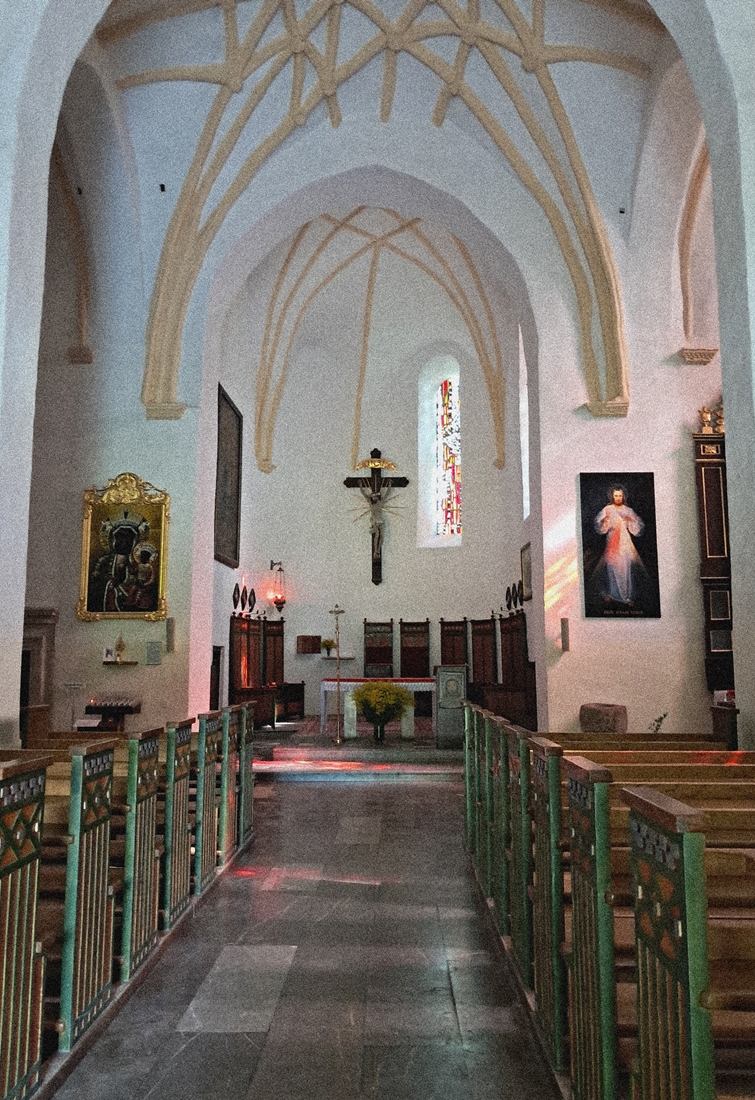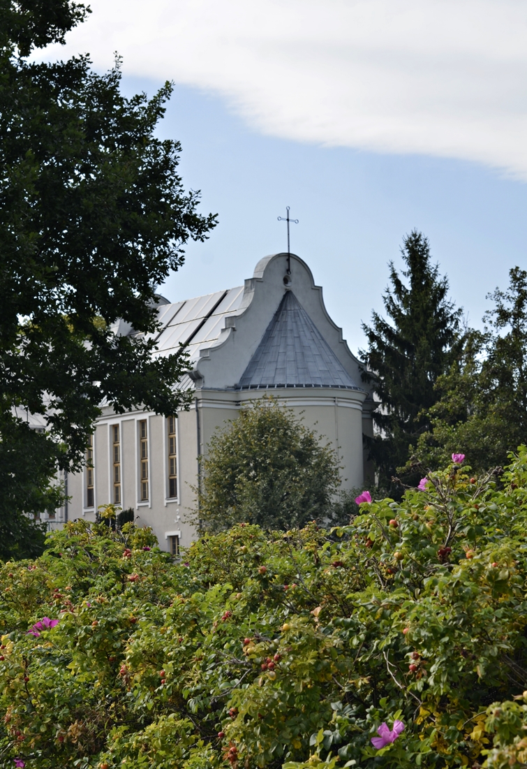 Po wizycie w świątyni ruszamy na spacer po rozległym terenie należącym do klasztoru Misjonarzy Oblatów Maryi Niepokalanej. Jest koniec sierpnia, wszędzie zielono. Mijamy przepięknie utrzymane ogrody klasztorne – oprócz altany z fontanną i ziołowych rabat znajduje się tu również ogromny labirynt w kształcie rozwijających się płatków róży, symbolizujący różaniec. Następnie kontemplujemy Kodeńską Kalwarię, usytuowaną na dawnym terenie zamkowym książąt Sapiehów. Jej centrum stanowi kościół Świętego Ducha – dawna kaplica. We wnętrzu jest cicho, pusto, mistycznie. Przez okna z witrażami miękko wpada kolorowe światło, rzucając migocące błyski na ołtarz i ławki. Świątynia powstała w latach 30. XVI wieku jako kaplica zamkowa dla potrzeb dworu, a jej układ przestrzenny jest typowy dla słowiańskich kościołów bizantyjskich. Z kolei kawałek za kościołem i klasztornymi ogrodami rozciągają się łąki przylegające do dziko meandrującej rzeki Bug, dzielącej w tym miejscu Polskę od Białorusi.