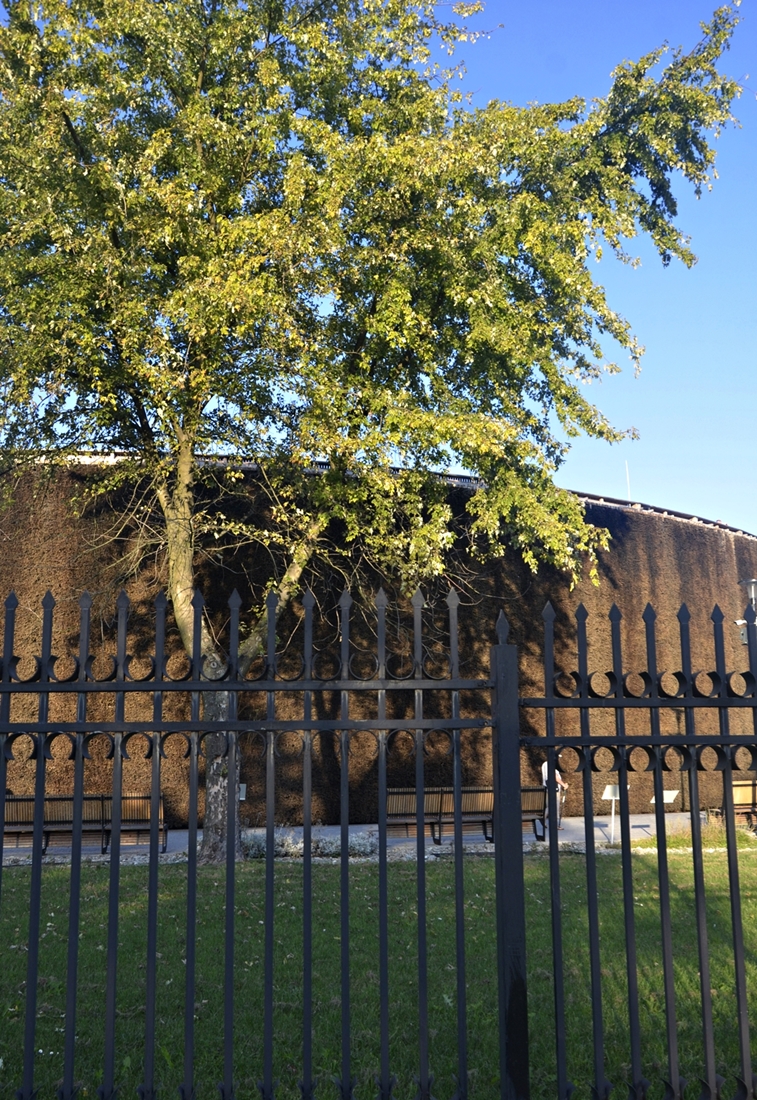 Kilka lat temu park zdrojowy w Busku-Zdroju wzbogacił się o całkiem nowoczesną infrastrukturę – mowa o okazałej tężni solankowej i usytuowanym tuż obok niej domu zdrojowym. Tężnię stanowią dwa pierścienie z tarniny (obwód większego to aż 226 m), oddzielone od siebie zawiłymi przejściami. W centrum znajduje się fontanna, jest też taras widokowy. My obeszliśmy tężnię jedynie z zewnątrz – zapach już tam był bardzo intensywny;-).