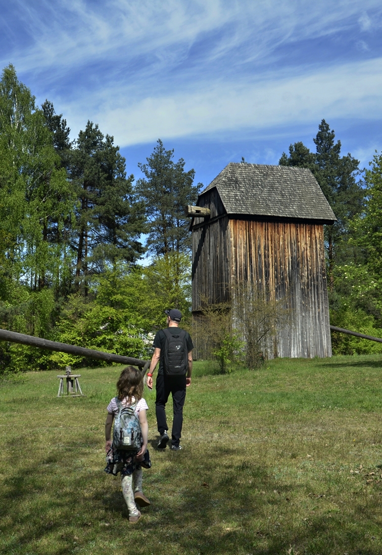 Radomski skansen zajmuje obszar o powierzchni 32,5 ha. Jest gdzie pochodzić! Dla zwiedzających są dostępne wystawy stałe i czasowe. Wystawy stałe podzielone są na zespoły: wiejski, dworski, sakralny i wiatraków. Jest także sekcja maszyn rolniczych. W zespole wiejskim zobaczymy m.in. dawne zagrody z wyposażeniem, remizę, Dom Ludowy. Po podwórzach chodzą kury, indyki, widzieliśmy także kozę. W zespole dworskim zobaczymy jak żyli lokalni ziemianie – oprócz dworków znajdziemy tu kuźnię, czworaki, kaplicę, a nawet...ceglany kurnik:-) Z kolei centralnym zabytkiem zespołu sakralnego jest drewniany, osiemnastowieczny kościółek z Wolanowa. Co roku odbywają się w nim uroczystości Niedzieli Palmowej. No i wiatraki...czyli coś, co moja córka lubi najbardziej. W radomskim skansenie są aż cztery koźlaki i jeden paltrak (mniej znana odmiana).