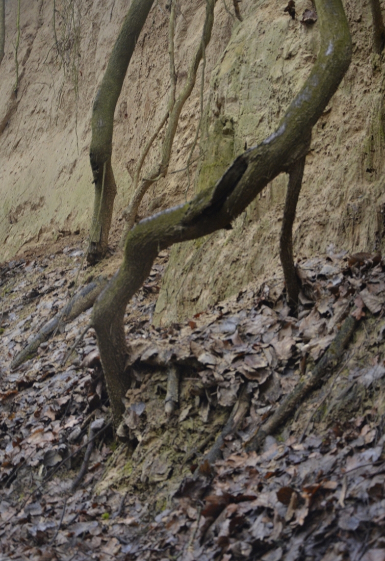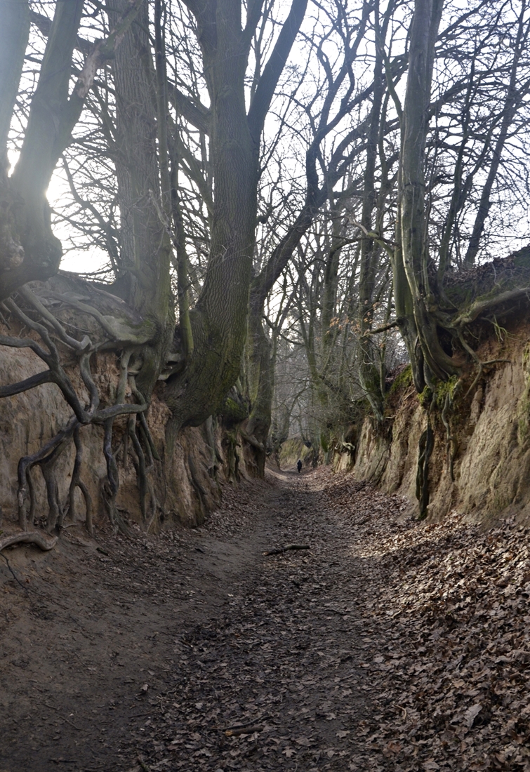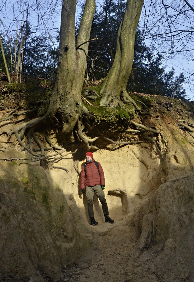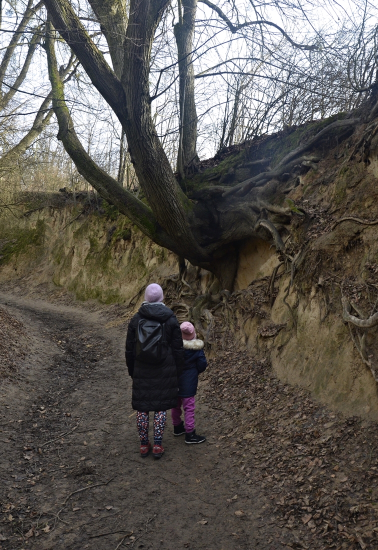 Z najsłynniejszym z nich, wąwozem Korzeniowy Dół, było jednak troszeczkę inaczej – bo to właściwie nie jest wąwóz, a głębocznica. Różni się tym, że nie powstaje naturalnie, lecz w wyniku działań człowieka (wskutek poprowadzenia dróg po nachylonych zboczach dolin). Niemniej ludzka ręka matki natury nie przebije - głębocznice są znacznie płytsze od wąwozów. Nie oznacza to jednak, że Korzeniowy Dół nie jest piękny – bo jest. Pozbawione roślinności pionowe ściany, wspinające się po nich splątane korzenie starych drzew, miękka gliniasta ziemia – to robi wrażenie.