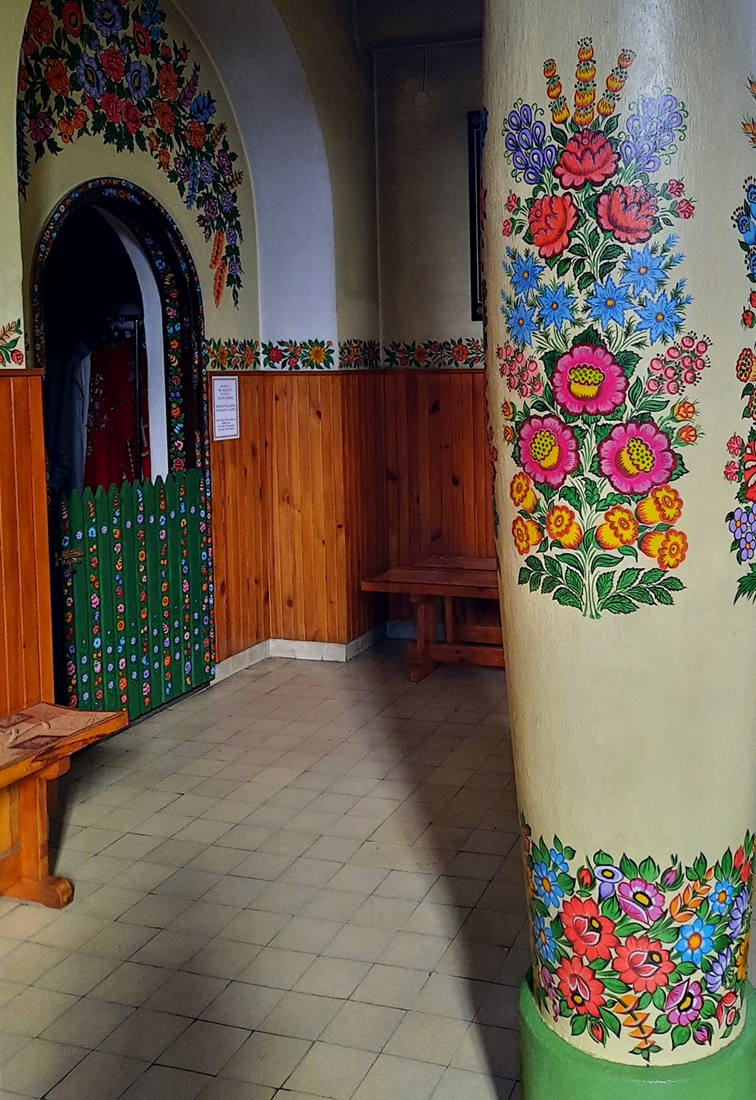 Kolejnym miejscem na naszej zalipiańskiej trasie był kościół. Jego wnętrze pełne jest kwiatowych kompozycji zaprojektowanych przez tarnowskiego malarza J. Szuszkiewicza, a wykonanych przez lokalne artystki pod kierunkiem Felicji Curyłowej.