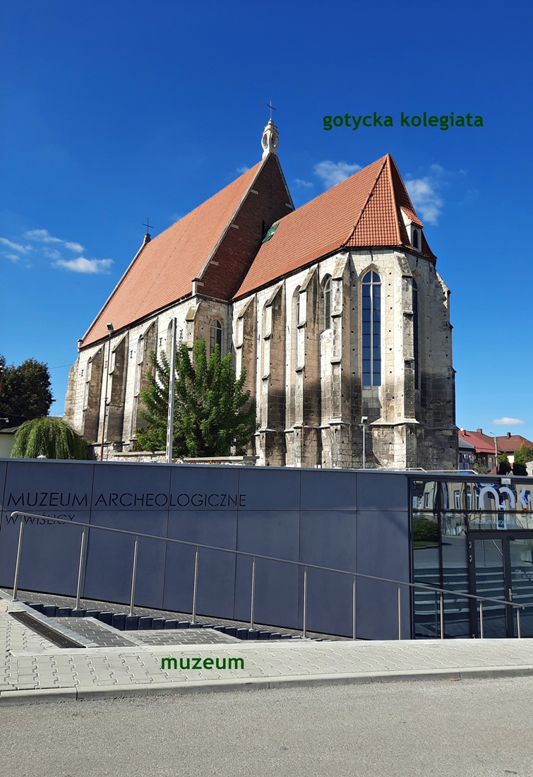 Nad wiślickimi zabudowaniami góruje monumentalna kolegiata – to gotycki kościół wzniesiony w XIV wieku na polecenie króla Kazimierza Wielkiego. Nosi wezwanie Narodzenia Najświętszej Marii Panny. Pod świątynią znajdują się fundamenty dwóch starszych – romańskich – można je zobaczyć w Muzeum Archeologicznym. Za budulec posłużył kamień ciosowy, jedynie szczyt fasady zachodniej jest obecnie ceglany.