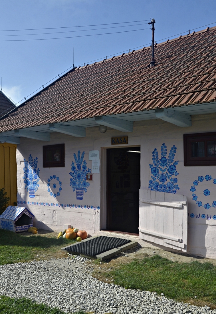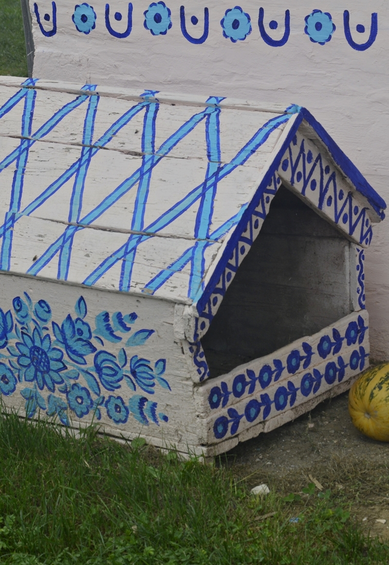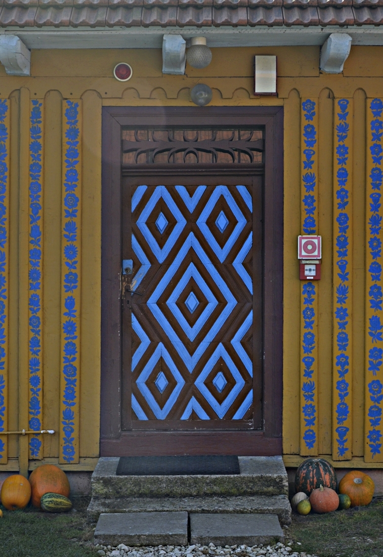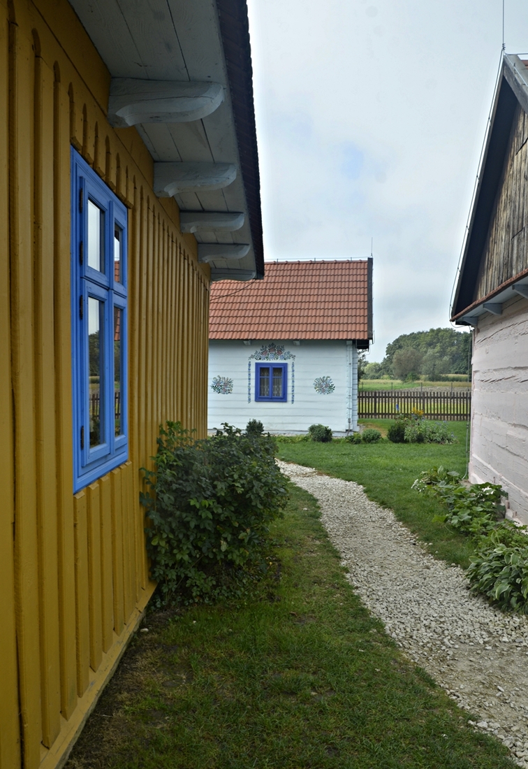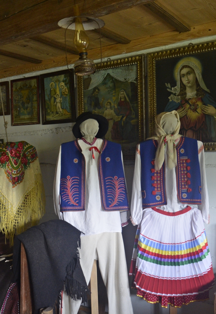 Będąc w Zalipiu, warto zajrzeć do mini-skansenu lokalnej sztuki ludowej „Zagroda Felicji Curyłowej”. Pani Felicja (1903-1974) była najbardziej znaną zalipiańską malarką, rzec by można, szefową;-). Lubiła mocne i jaskrawe kolory. Tworzyła nie tylko farbą i pędzlem, ale także wycinała, haftowała, dziergała. Wszystkie te elementy zdobnicze wprost zawładnęły wnętrzem chaty, w której mieszkała (nie ma go na zdjęciach, ponieważ pani przewodnik powiedziała, że możemy fotografować izby tylko na prywatny użytek) – wchodząc do środka zobaczymy wprost niesamowitą ilość malowanych kwiatów i ozdób. Na ścianach, sufitach, piecach, meblach, sprzętach. Wszędzie! Z zewnątrz dom również jest ozdobiony, choć zdecydowanie skromniej.