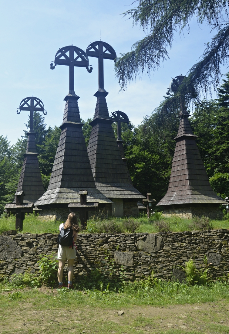 Budowano je przeważnie na wzniesieniach, techniką zrębową. Ważna była także orientacja świątyni – te, których prezbiterium wskazywało wschód, nazywano orientowanymi. W Beskidzie Niskim zobaczymy różne warianty architektoniczne łemkowskiej cerkwi. Myślę, że najbardziej charakterystyczny dla tej krainy jest styl zachodniołemkowski. Cerkwie tak budowane miały trzy wieże – najniższą nad prezbiterium, najwyższą od strony babińca. Były trójdzielne. Zewnętrzne ściany cerkwi pokrywano przeważnie gontem albo szalunkiem. Zadaszenia miały kształt kopuł zwieńczonych latarniami i hełmami. To jeden z najpiękniejszych elementów łemkowskich świątyń:-).