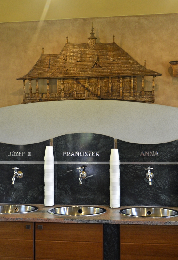 Z jakich źródeł napijemy się w pijalni? Jak tradycja nakazuje – głównie imiennych:-). Jest tu i Franciszek, i Henryk, i Józef, i Anna. Smaki od łagodnych po wyraziste, dla każdego coś dobrego. Wysowskie wody pomagają głównie na układ oddechowy, moczowy i trawienny – tak podają dostępne na miejscu broszurki. Z miejscowej rozlewni pochodzi także butelkowana woda „Wysowianka”. Pijalnia jest rekonstrukcją tej zabytkowej, która spłonęła w pożarze w latach 60. Otacza ją zadbany park ze Starym Domem Zdrojowym, fontanną, amfiteatrem i licznymi alejkami.