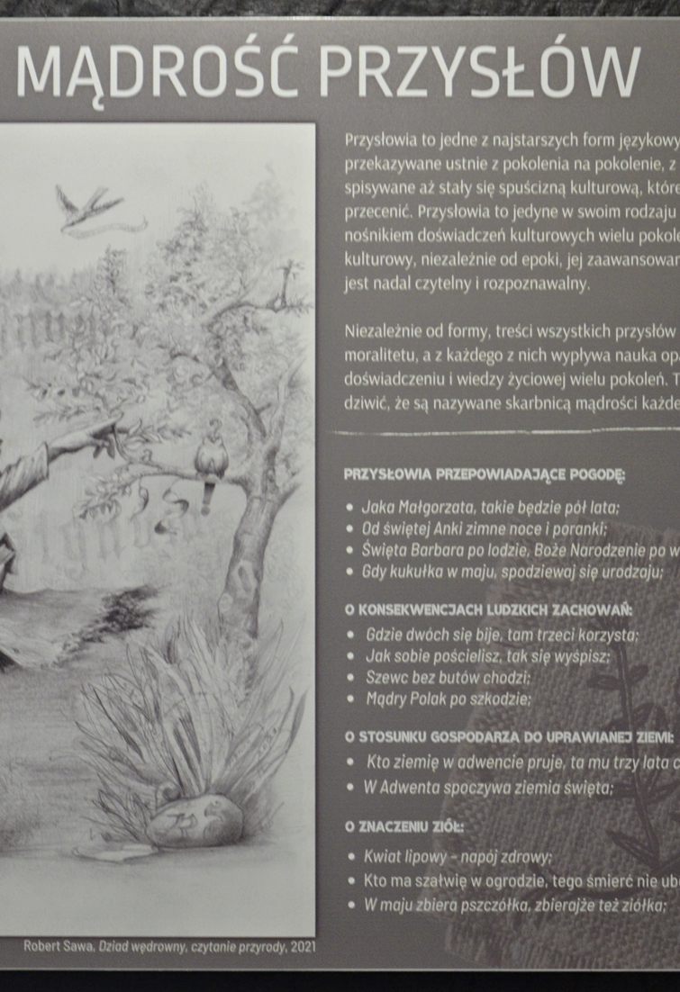 Dużo ciekawych informacji prezentują plansze – opisane jest na nich m.in. jak wyglądała przestrzeń typowej dla regionu chaty, a także jakie były tradycje nadwiślańskiej społeczności żydowskiej (przed wojną licznej zarówno w Kazimierzu jak i w Janowcu). Sporo dowiemy się również o ludowych wierzeniach związanych z przyrodą i jej cyklicznością.