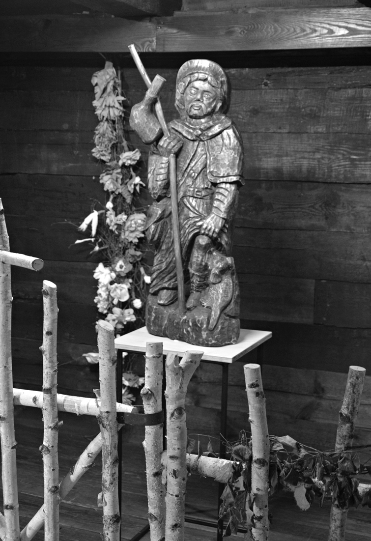 Kościółek „Na Nowsiu” powstał w 17 wieku. Drewniany, orientowany, o konstrukcji zrębowej. 2 lipca, w święto Matki Bożej Jagodnej, mieszkańcy wsi Tłuczań udawali się do niego trawiastymi ścieżkami, by modlić się o urodzaj. Stoi samotnie, na uboczu. Gdyby nie drogowskaz, nigdy byśmy do niego nie trafili.