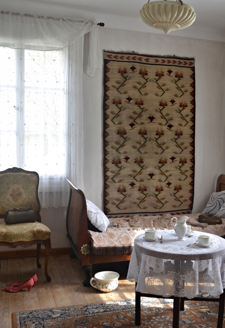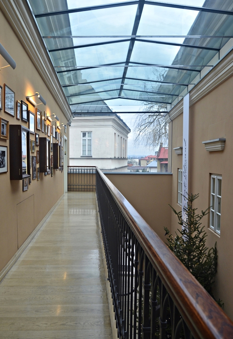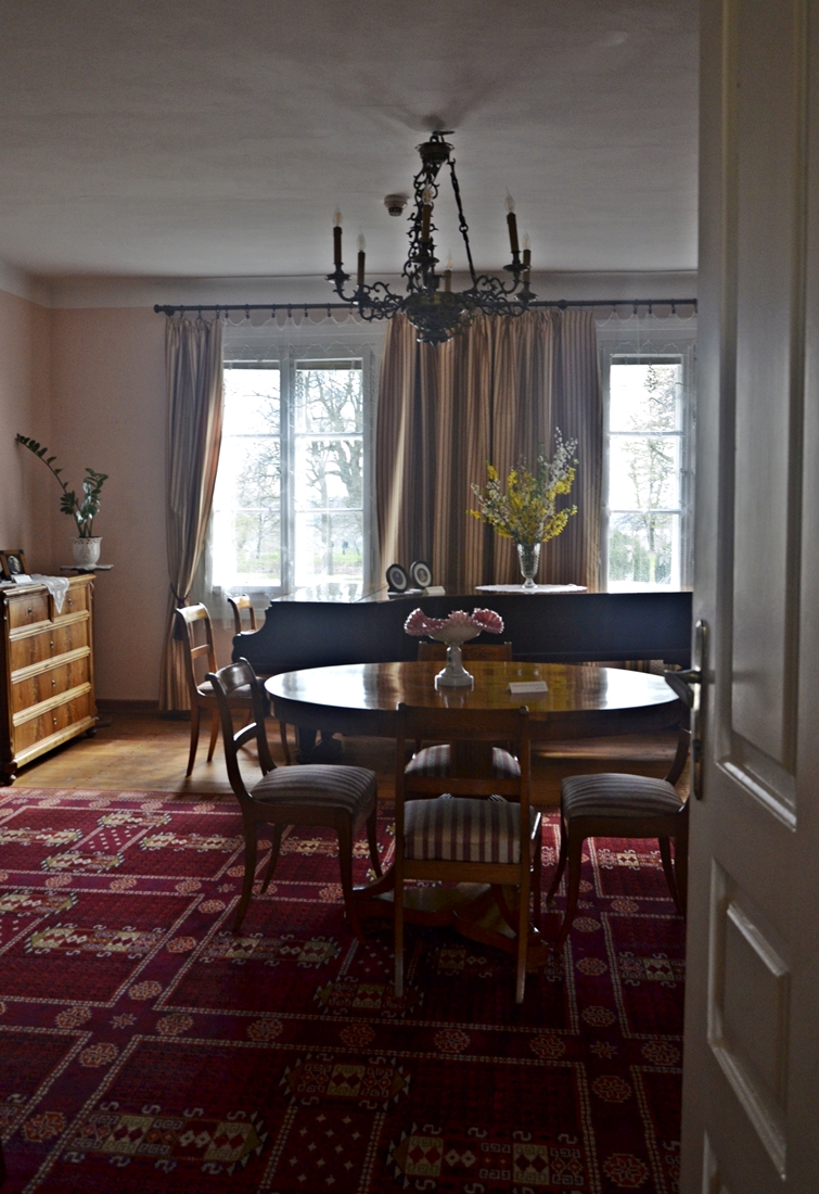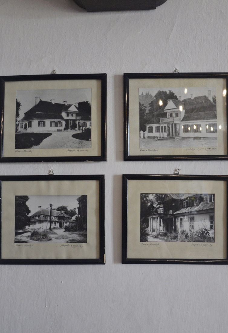 W środku zobaczymy jak wyglądały pokoje w ziemiańskich siedzibach regionu Lubelszczyzny. Ściany ozdabiają zdjęcia dworu przed wojną. Na poddaszu są pokoje gościnne:-).