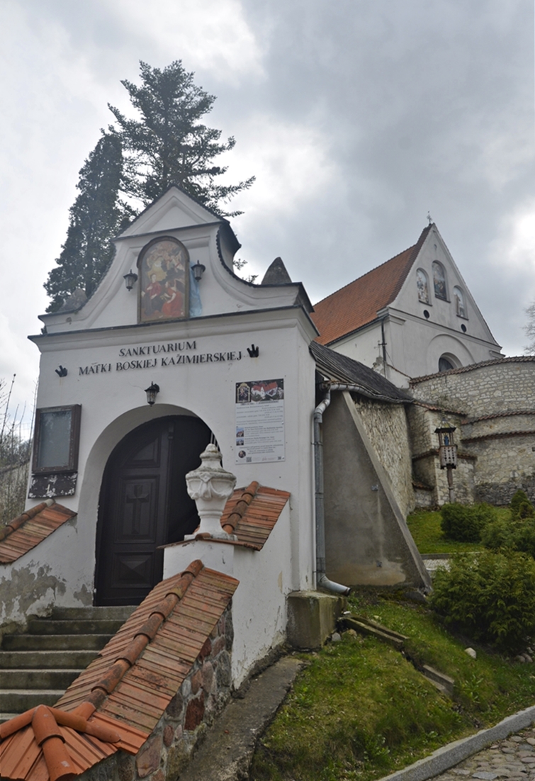 Podczas naszych pobytów w Kazimierzu zawsze zatrzymujemy się przy ulicy Krakowskiej (to chyba najbardziej malownicza uliczka tego miasta:-)). Tym samym, wracając do naszego pensjonatu z rynku i innych spacerów, mijamy przepięknie położony kościół i klasztor. To sanktuarium Zwiastowania NMP, do którego prowadzą długie drewniane schody.