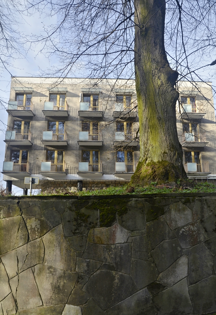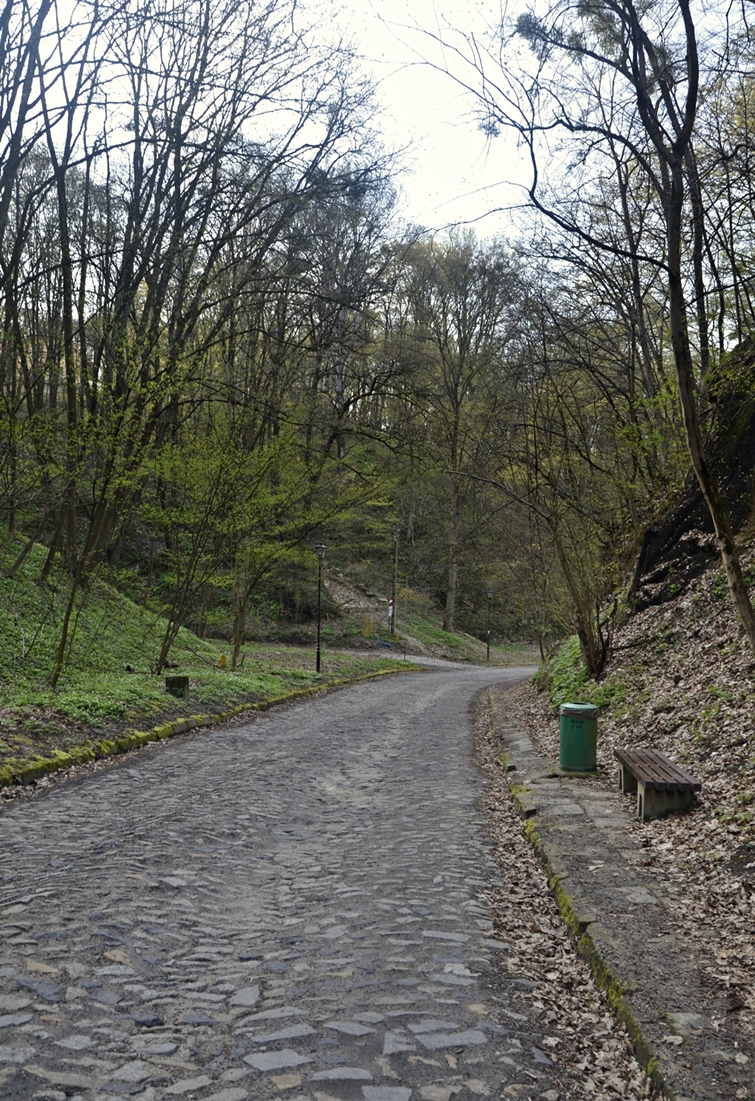 Początkowo trasa jest wybrukowana. Na lessowych zboczach rosną gęsto drzewa, w koronach śpiewają ptaki;-). Po kilkunastu minutach spaceru pod górę dojdziemy do wspomnianej Kuncewiczówki (zdj. 5) i Domu Dziennikarza (zdj. 3). Kuncewiczówkę, czyli dom pisarki Marii Kuncewiczowej i jej męża Jerzego, zaprojektował Karol Siciński, pasjonat Kazimierza. Małżeństwo miało plan, by przyjeżdżać tu z Warszawy każdego lata – czekał na nich dom skrojony na miarę potrzeb, z przestronnym gabinetem i miejscem do pracy. Wojna obróciła marzenia w pył. Obecnie w willi mieści się jeden z oddziałów Muzeum Nadwiślańskiego.