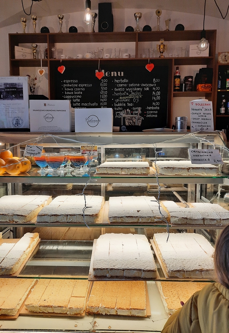 PS 1. Na zdjęciach pokazuję różne wadowickie kawiarnie serwujące papieską kremówkę.