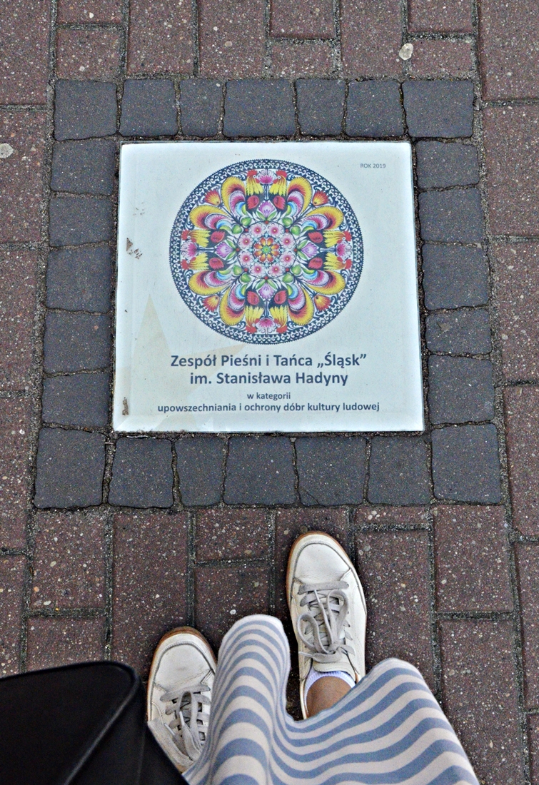 W jednym z chodników Starego Rynku w Łowiczu od 2011 roku możemy podziwiać „gwiozdy”. To jeden z trzech typów wycinanki łowickiej (jest jeszcze „kodra” i „tasiemka”), które niegdyś zdobiły tutejsze domostwa:-).
