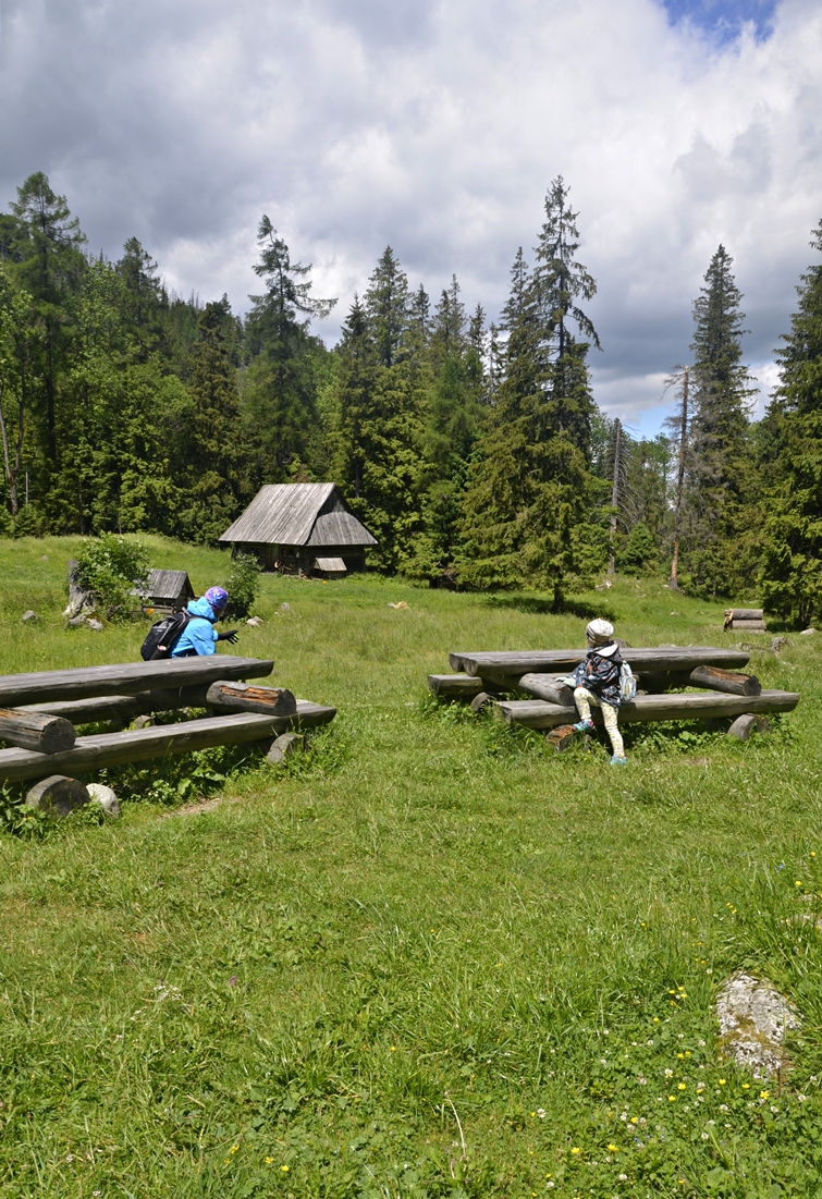 Gdy doszliśmy do celu, naszym oczom ukazały się trzy pasterskie szałasy. Niegdyś wypasali tu swoje stada pasterze z Kościeliska i Nowego Bystrego, tzw. zastolanie. Budynki mają niskie zręby, a pasterze zabezpieczali ich dachy tzw. wiaternicami – drewnianymi ramami obłożonymi kamieniami (dziś już ich nie ma). Szałasy są wpisane do rejestru zabytków.