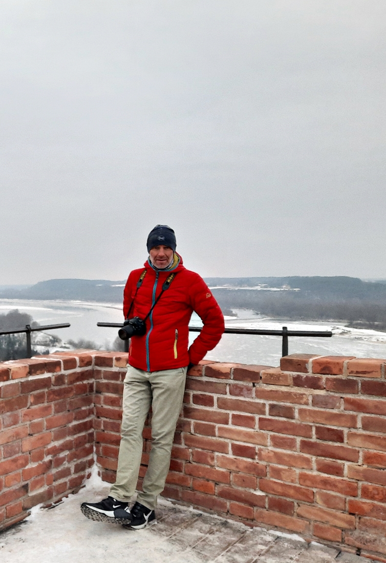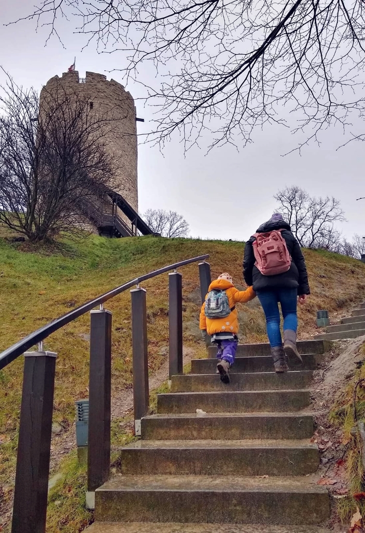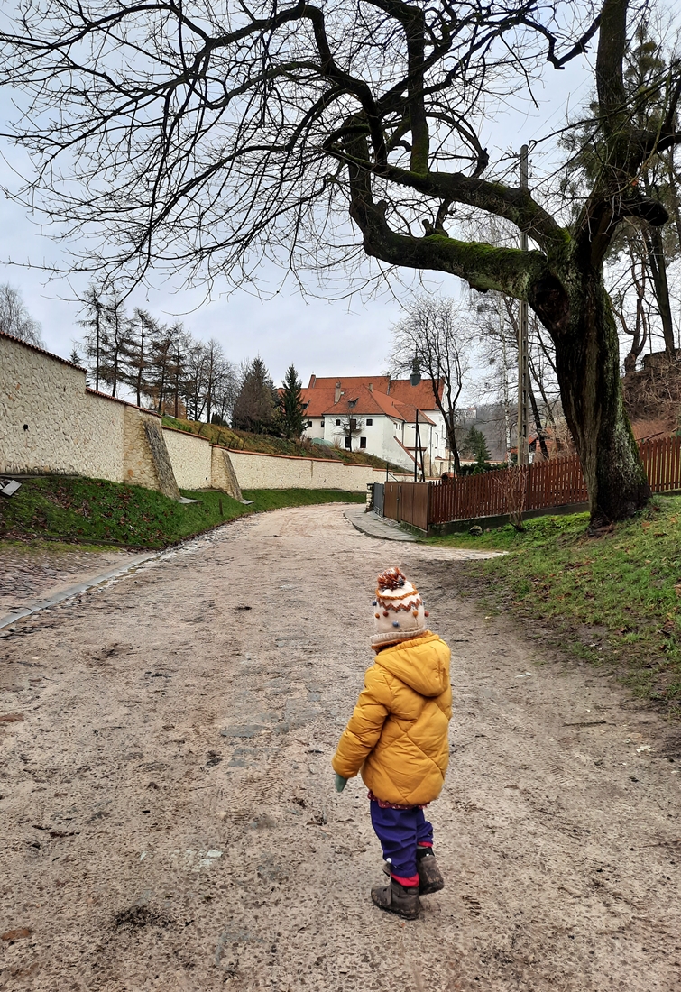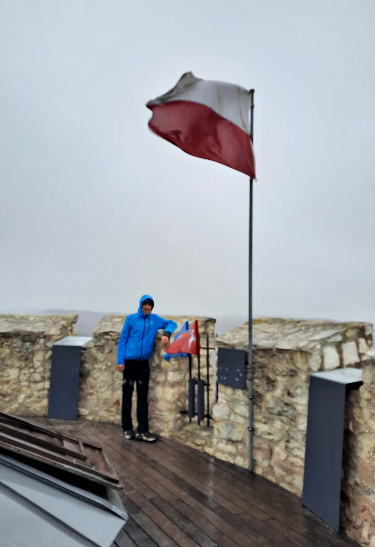 Wiało i padało. Było zimno, choć nie śnieżnie – taki to ostatni dzień roku 2021 przypadł nam w udziale;-). Schody na górę baszty były dosyć śliskie, więc poręcz okazała się niezbędna. Co ciekawe, grubość murów kazimierskiej wieży zmienia się wraz z jej wysokością – u podstawy to około czterech metrów, u szczytu już trzy.