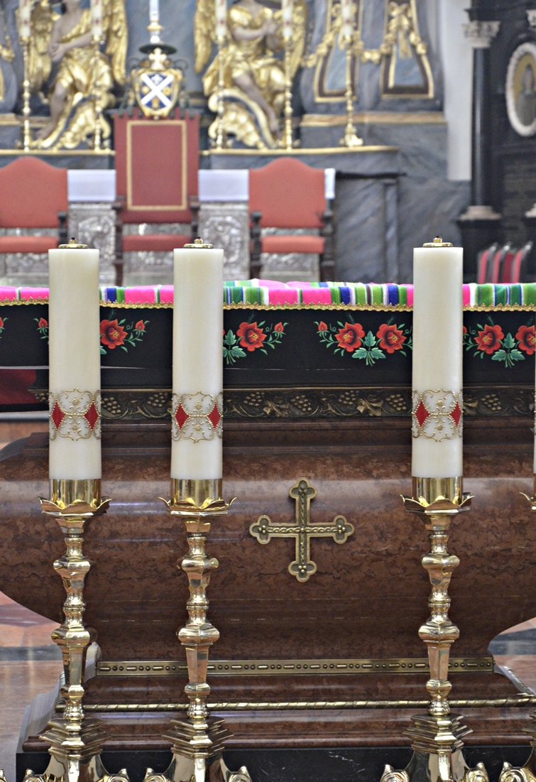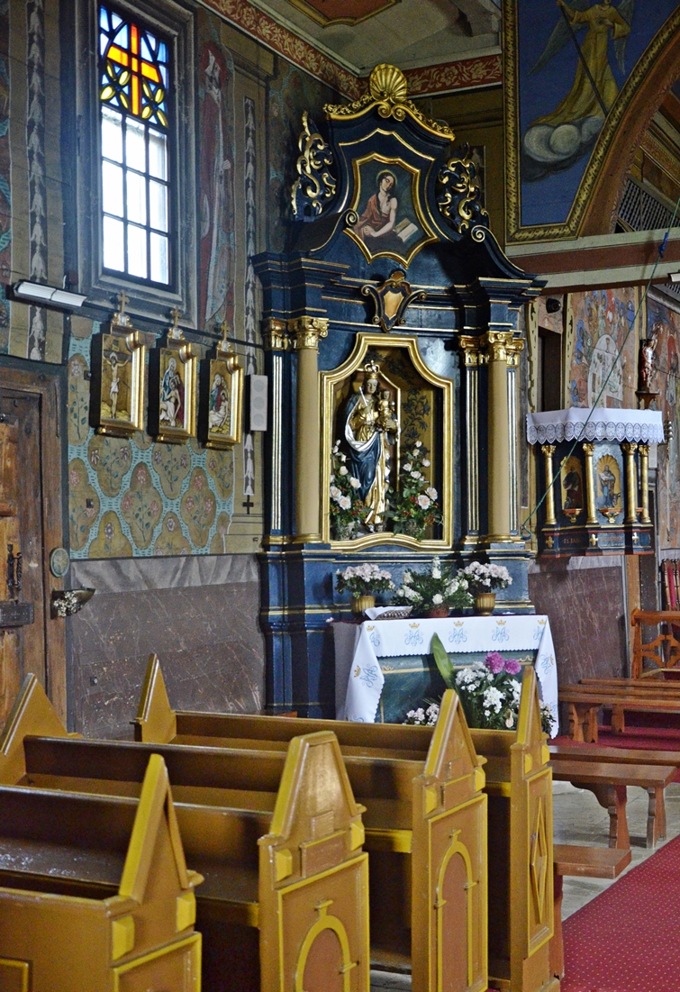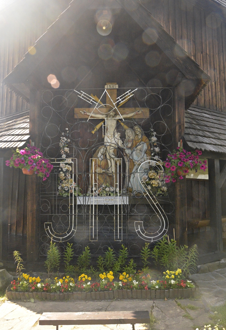 W rokokowym ołtarzu została umieszczona słynąca łaskami figura Matki Bożej Ludźmierskiej (nazywanej tutaj Gaździną Podhala), którą datuje się na 600 lat. Na stronie sanktuarium znalazłam bardzo ciekawą historię związaną z jej koronacją – w 1963 r. na uroczystość przybyli kardynał Stefan Wyszyński oraz Karol Wojtyła, wówczas biskup krakowski. W momencie błogosławieństwa wiernych ukoronowaną figurą Matki Bożej, z jej dłoni wypadło berło. Nie znalazło się na ziemi – w locie chwycił je Karol Wojtyła. Kardynał Wyszyński rzekł wówczas: „Karol, Matka Boża przekazuje Ci władzę”. Jakże znamienne słowa w kontekście tego, co wydarzyło się 15 lat później…:-). Jan Paweł II odwiedził Ludźmierz podczas pielgrzymki w 1997 roku.
