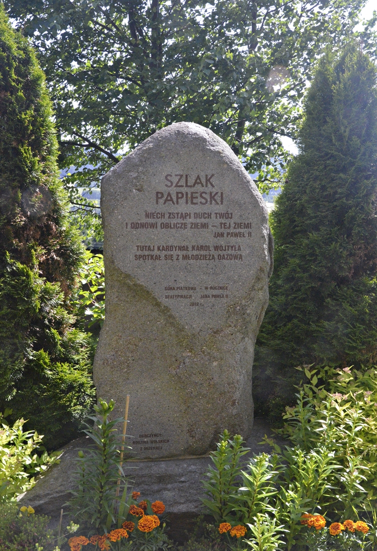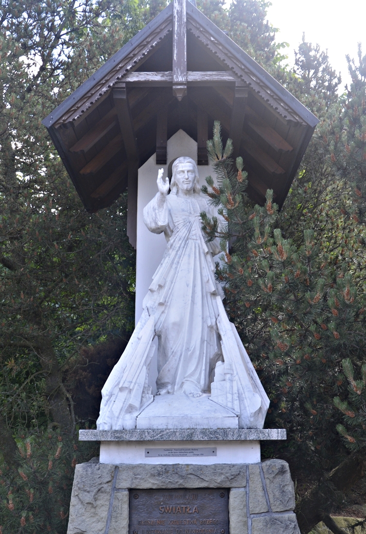 Do papieskiej pielgrzymki nawiązuje przylegający do kościoła Ogród Różańcowy – w centralnej części parku znajduje się pomnik Ojca Świętego, a wokół niego rozsiane są starannie zaprojektowane kapliczki z tajemnicami różańca, modlitwy szczególnie bliskiej sercu św. Jana Pawła II. Na terenie sanktuarium znajdują się także stacje drogi krzyżowej oraz źródełko z repliką figury Matki Bożej Ludźmierskiej.