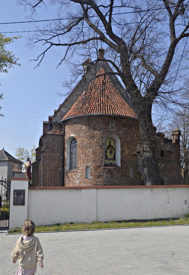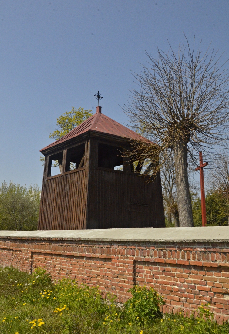 Kościół św. Apostołów Piotra i Pawła ma cechy budowli o charakterze obronnym, na co wskazuje okrągła baszta. Jego architektura była pierwotnie w stylu gotyckim, jednak 40 lat później zostały dobudowane elementy charakterystyczne dla renesansu mazowieckiego. Wnętrze udało nam się zobaczyć jedynie przez kratowane drzwi, a szkoda, bo znajduje się tu piękne sklepienie gwiaździste:-). Obok kościoła stoi drewniana dzwonnica.