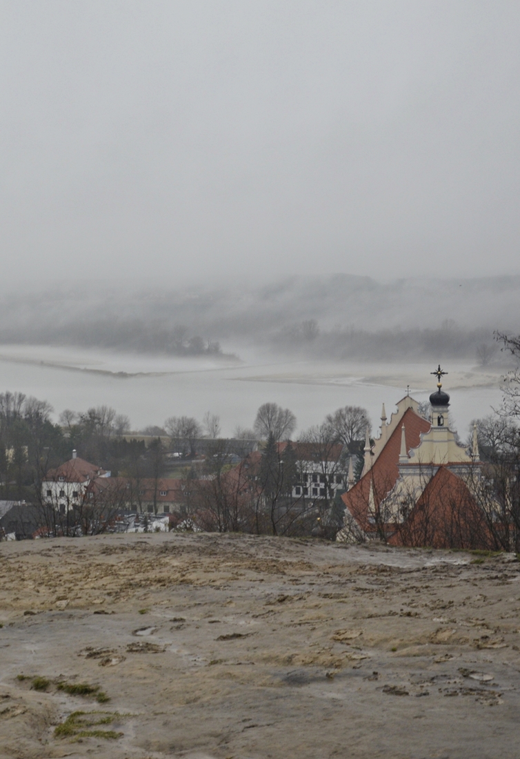 Ulica Puławska jest na tym odcinku totalnie urokliwa. Wiedzie wzgórzem, z którego widać dachy starych domów i rzekę Wisłę. Pod stopami bruk, a z każdym krokiem coraz wyraźniej zaznaczają się mury kazimierskiej fary. To był ostatni dzień roku, zamglony i dżdżysty. Pachniało starym drewnem, gdzieniegdzie zaszczekał pies, po sztachetowym płocie przemknął kot. I to szare niebo - zupełnie jakby szedł wieczór, a była dopiero piętnasta.