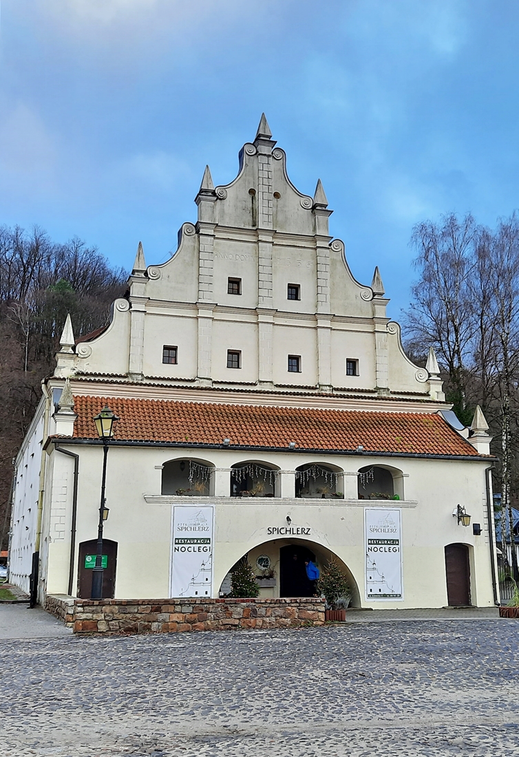 Spichlerz ze zdjęcia jest jednym z najmłodszych – pochodzi z 1633 roku. Został wzniesiony w stylu renesansu lubelskiego, a budulcem jest wapień, jak na Kazimierz przystało. Po II wojnie światowej spichlerz został zaadaptowany na Dom Wypoczynkowy PTTK i przez wiele lat właśnie tu zatrzymywało się najwięcej turystów.