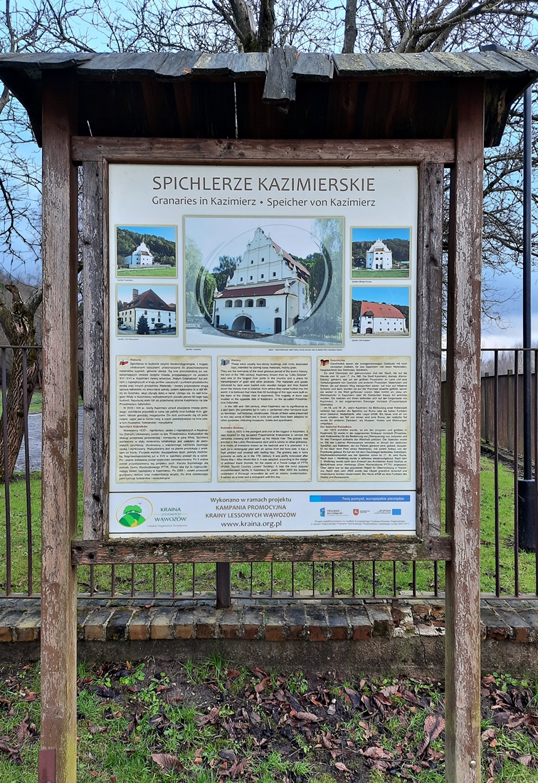 Podobno w Kazimierzu było ich około 60. To budynki dwukondygnacyjne i bardzo charakterystyczne – zwłaszcza dzięki bogatym zdobieniom w fasadach. W 18 wieku miasto przestało pełnić tak ważną funkcję portową, a spichlerze zaczęły popadać w ruinę. Obecnie pozostało ich jedenaście.