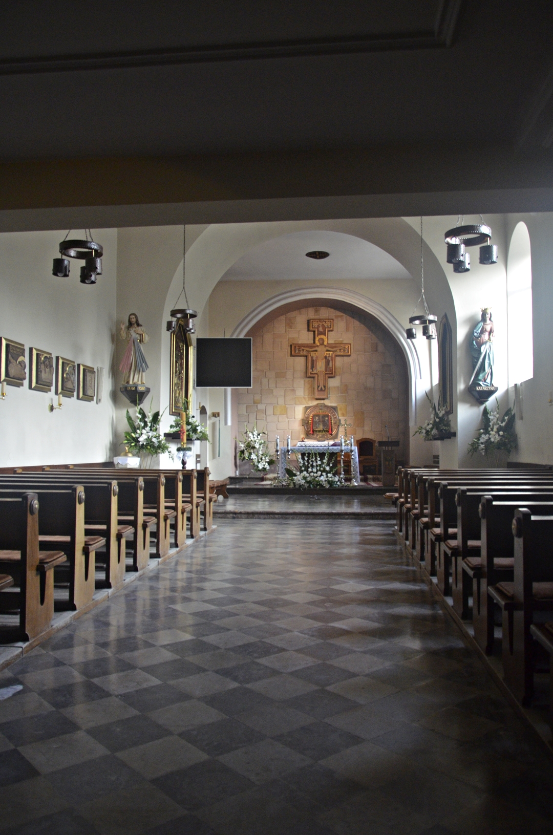 Patrząc na bryłę klasztoru (zdjęcie 3), próżno dopatrywać się w niej cech którejkolwiek epoki – to efekt licznych przebudów. Zachowały się jednak renesansowe krużganki (piękne!) z późnogotycką, kamienną figurą Świętej Katarzyny. Druga, drewniana, została umieszczona w kościele. Wieść głosi, że w dawnych wiekach przywieziono ją tutaj z północnej Afryki, jednak obecna rzeźba jest prawdopodobnie kopią zaginionego w pożarze oryginału. Ach, dużo niewiadomych.