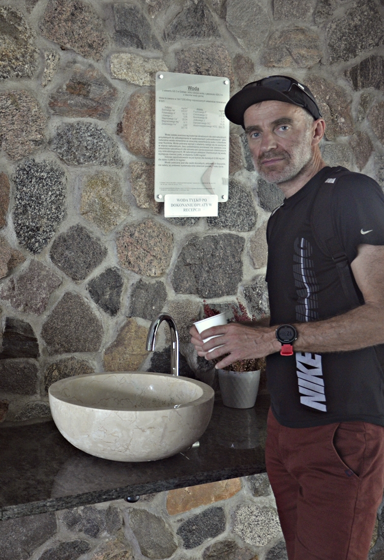 Jest też (a jakże!) pijalnia. Z kubeczkami wypełnionymi wodą czerpaną z gołdapskich zdrojów udajemy się do przeszklonego pomieszczenia z mini-tężniami. Już na dworze było gorąco, ale tutaj – to dopiero! W budynku znajduje się także grota solna.
