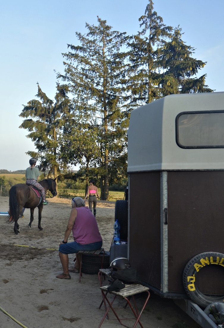 Za gospodarstwem, po dzikich łąkach Mazur Garbatych, biegają konie. To konie pani Ani, która prowadzi w Lisach ośrodek jeździecki. Uczniowie mają okazję pokłusować, ale także poznać obowiązki w stajni i obejściu.