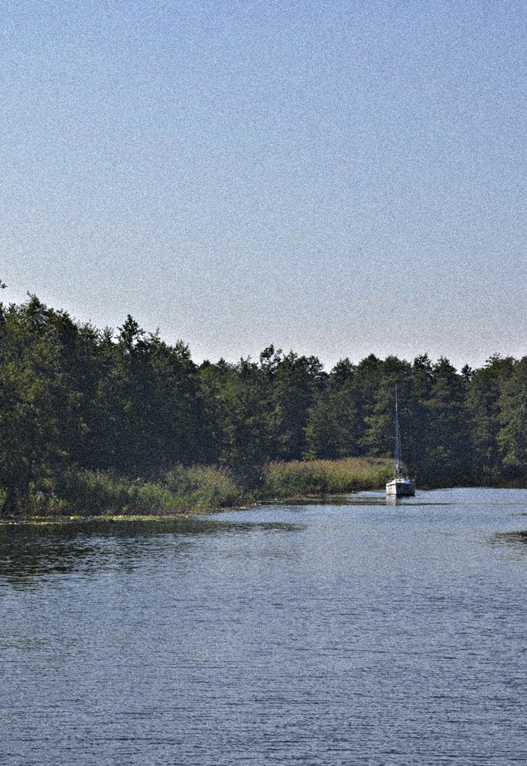 Mamry są połączone z przystanią w Węgorzewie kanałem o długości 920 metrów. Przyroda tętni tu życiem – w pobliżu żerują bobry, mazurskie ptaki mają swoje lęgowiska. Po krótkim czasie wpłynęliśmy na otwarte wody jeziora. Żaglówek wokół było w bród – pięknie migotały w słońcu.