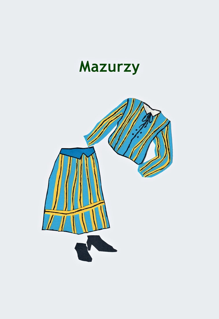 Wycinanka przedstawia tradycyjny mazurski strój.