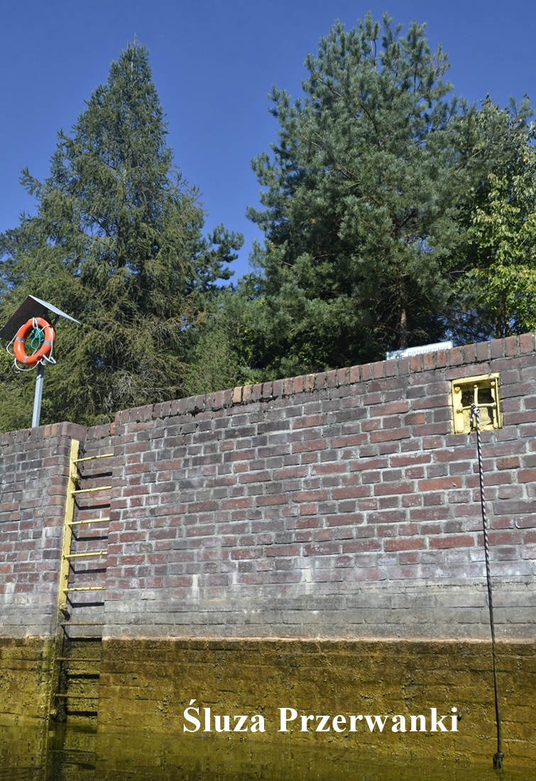 My jednak wybraliśmy krótszą opcję – ze Śluzy Przerwanki - tam czekał już na nas uprzednio zarezerwowany kajak. Śluza znajduje się przy ujściu Sapiny z Gołdopiwa i jest pamiątką po pruskich czasach – powstała w 1910 roku w celu regulacji poziomów wody podczas budowy Kanału Mazurskiego. Już przeprawa przez nią była nie lada atrakcją, ale gdy znaleźliśmy się na spokojnej wodzie otulonej gąszczem drzew – to dopiero była przyjemność.