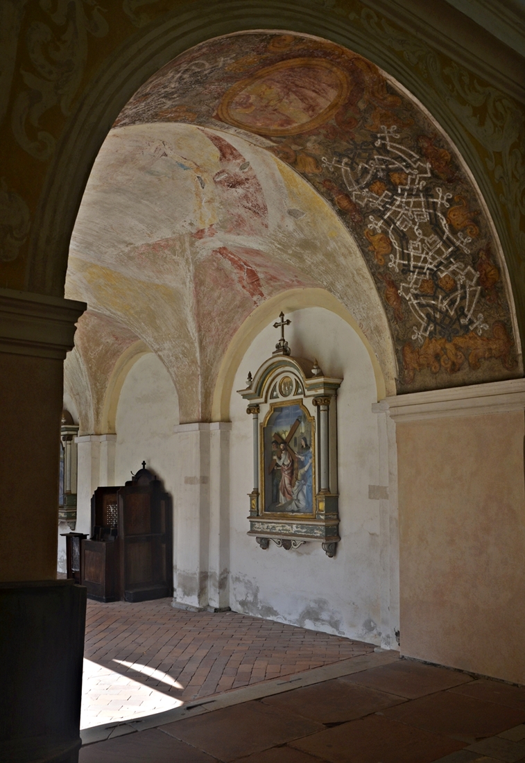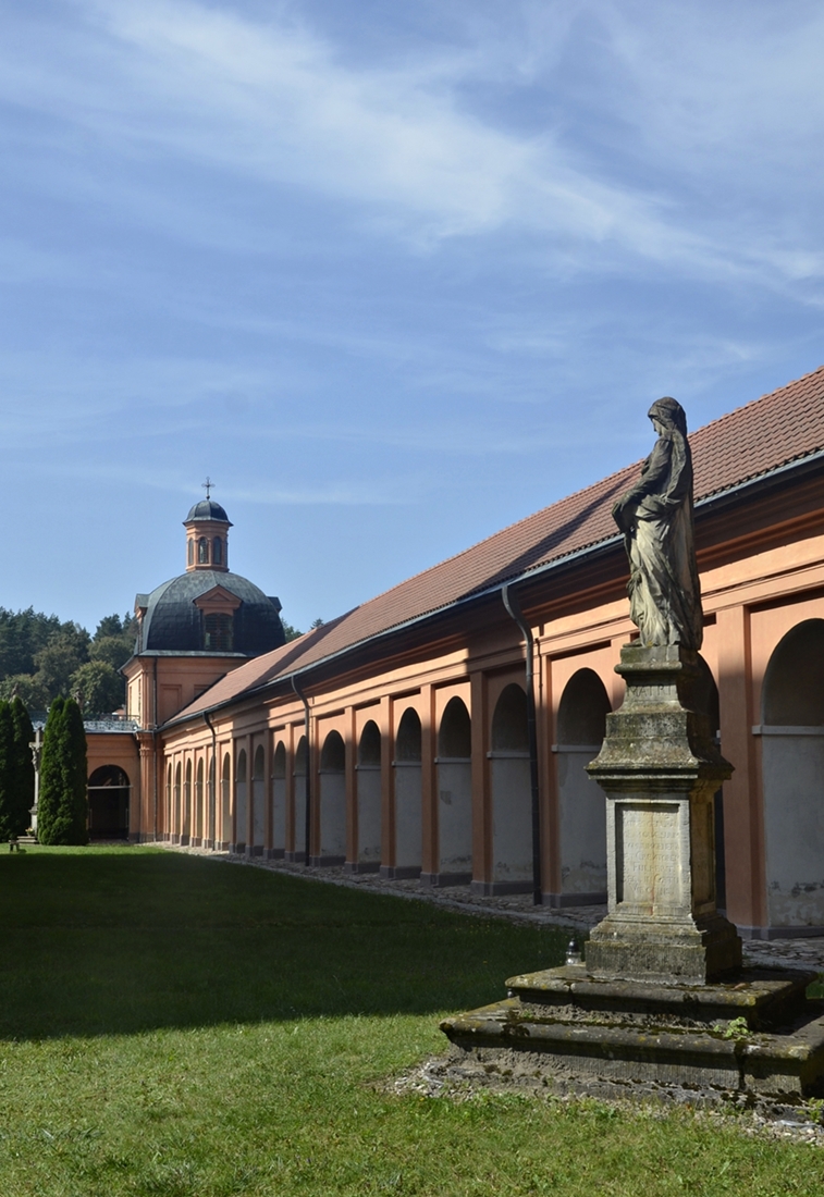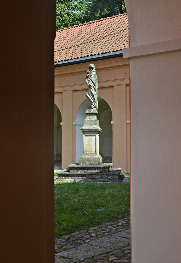 Centrum sanktuarium maryjnego w Świętej Lipce stanowi barokowy kościół, o którym pisałam poprzednio. Otacza go czworobok pięknych krużganków z kaplicami w narożach. Do jednego z ramion krużganka przylega budynek klasztoru, z kolei na dziedzińcu znajdują się cenne rzeźby – Matki Bożej Niepokalanej, św. Józefa i św. Anny. Warto spędzić tu trochę czasu – atmosfera Świętej Lipki przywodzi na myśl tę z południowoeuropejskich sanktuariów:-)