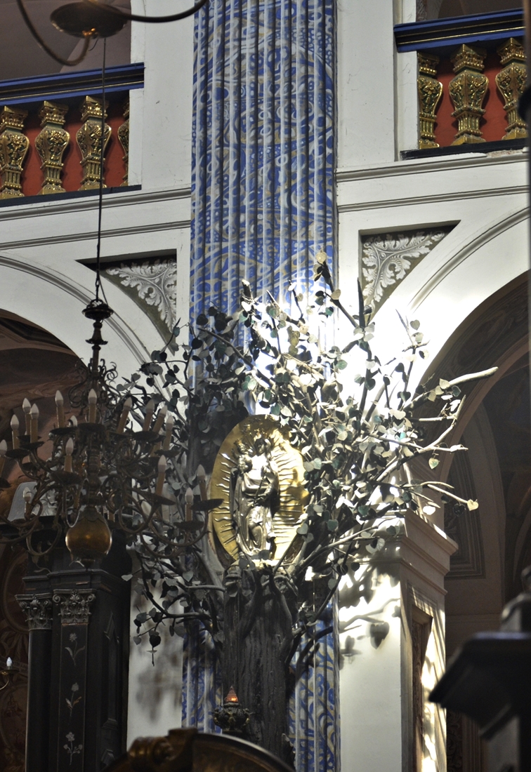 Jest tłoczno, za chwilę ma się rozpocząć msza. Do bazyliki prowadzi nas okazała zielona brama z liśćmi akantu. Po liturgii zwiedzamy wnętrze kościoła – w ołtarzu umieszczony jest obraz Matki Bożej Świętolipskiej z 1640 roku, z kolei naprzeciw ambony widzimy rzeźbę Maryi na pniu drzewa lipowego. Duże wrażenie robią na nas organy z pierwszej połowy XVIII wieku – to chyba najsłynniejsze organy w Polsce! Zachwycają nie tylko dźwiękiem, ale także ruchomymi figurkami, przedstawiającymi scenę Zwiastowania. Mieliśmy okazję zobaczyć je „w akcji”.